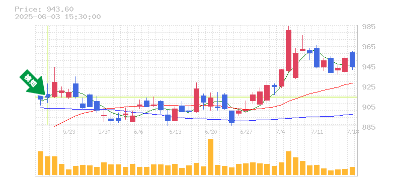 最近の株価動向は明るい兆しを見せています。直近のデータでは、価格が上昇トレンドにあり、特に終値が前日から大きく上昇しています。移動平均線も上昇しており、短期的な価格が長期的なトレンドを上回っているため、今後のさらなる上昇が期待できます。