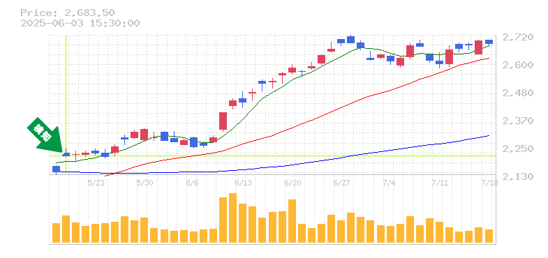 過去の動きを見ると、直近のサポートラインは2200前後に位置しており、これを下回ることがなければ、さらなる上昇が見込まれます。リスク管理の観点から、損切り価格は約2150円を目安に設定するのが良いでしょう。この水準を下回るとトレンドが変わる可能性があるため、注意が必要です。