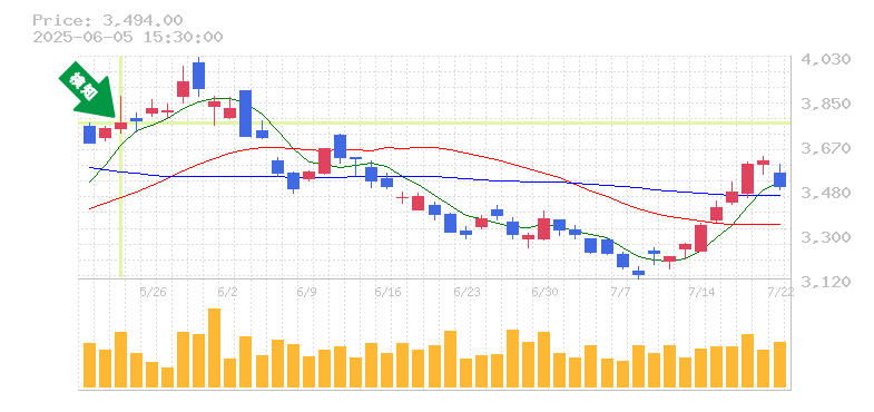 リスク管理の観点から見ると、直近の安値である3250円付近を損切りラインとして設定するのが良いでしょう。この価格を下回った場合、トレンドが変わる可能性があるため、早めの対応が賢明です。また、現在の価格から見ると、利益確定の目安としては3500円を検討する価値があります。