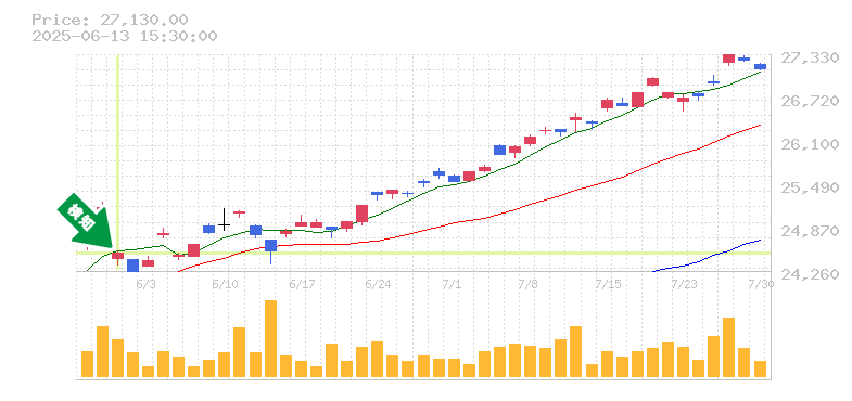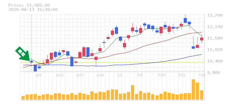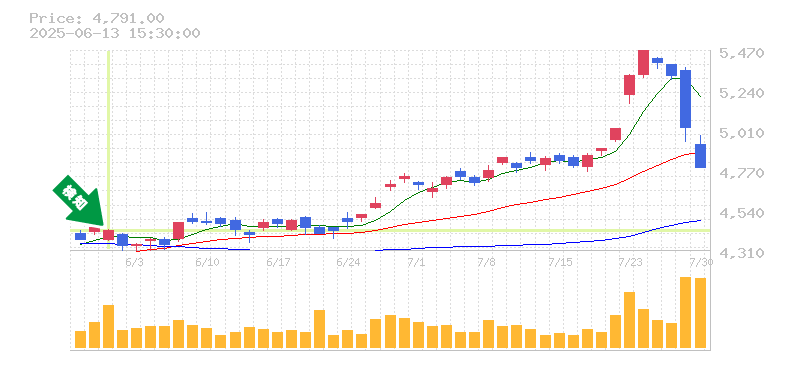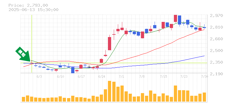 ここ最近の株価動向を見てみると、全体的に上昇トレンドが続いているのが印象的です。特に直近の終値は高値圏で推移しており、買い意欲が強いことが伺えます。移動平均線も上昇を示しており、短期的な価格も安定している様子です。これにより、今後のさらなる上昇も期待できそうです。