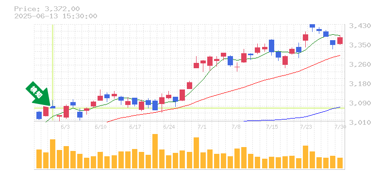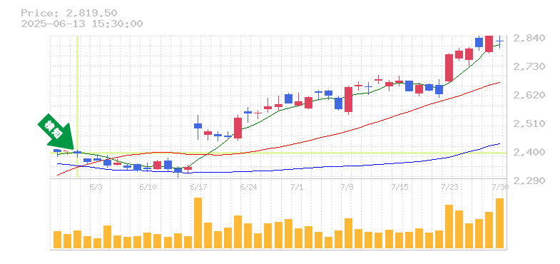 近年の株価動向を踏まえると、全体的に上昇トレンドが見られ、特に最近の数日間は価格が安定していることが確認できます。移動平均線を基にした判断からも、短期的なトレンドは非常にポジティブで、価格が過去の安定した水準を上回っていることがわかります。今後の展開としては、さらに上昇が期待できる状況です。