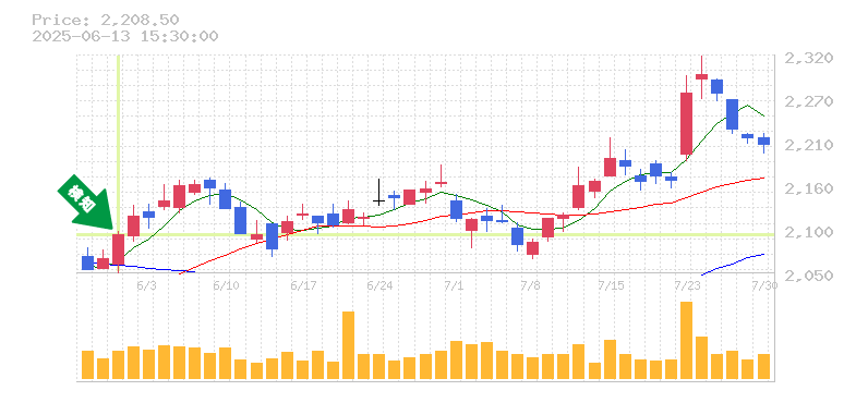 過去のデータから見ると、損切り価格の目安としては、直近の安値を下回る水準、例えば2050円前後が考えられます。この価格を下回った場合は一時的な下落が考えられるため、リスク管理として重要なポイントです。