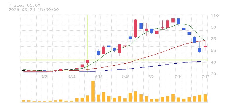 | 株価:40円(21.21%)前日比:+7 | ||||