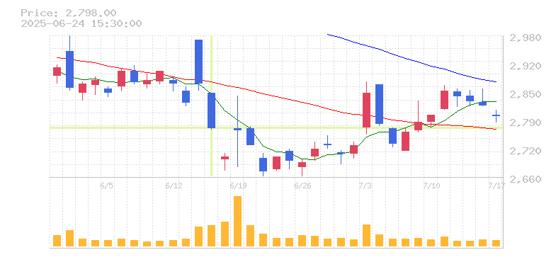 | 株価:2,772円(-3.5%)前日比:-100.5 | ||||