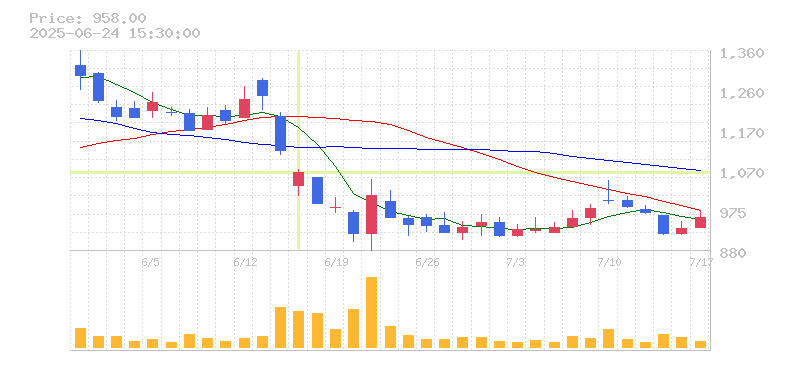 | 株価:1,066円(-4.65%)前日比:-52 | ||||