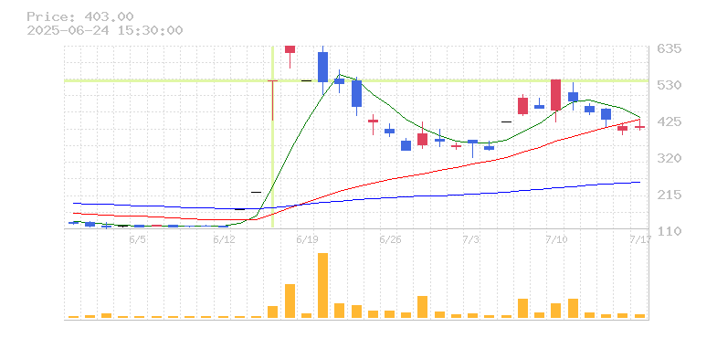 | 株価:422円(23.39%)前日比:+80 | ||||