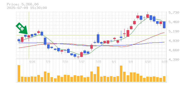 また、出来高の増加も注目すべきポイントです。投資家の関心が高まっていることを示しており、今後の上昇に弾みをつける要因となるでしょう。全体として、安定したトレンドを維持しながら、さらなる成長が期待できる銘柄と言えます。