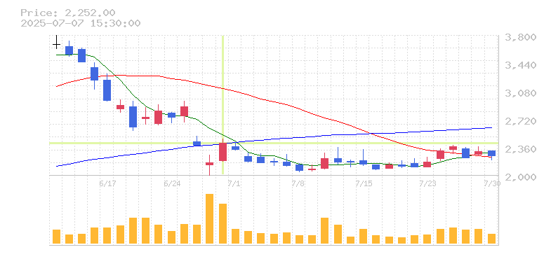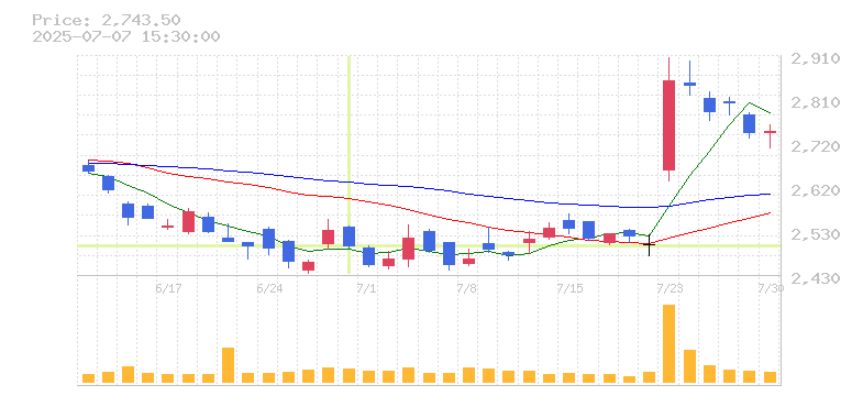 | 株価:2,493円(-1.35%)前日比:-34 | ||||