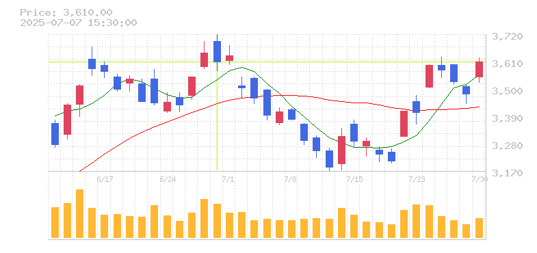 | 株価:3,610円(-0.93%)前日比:-34 | ||||