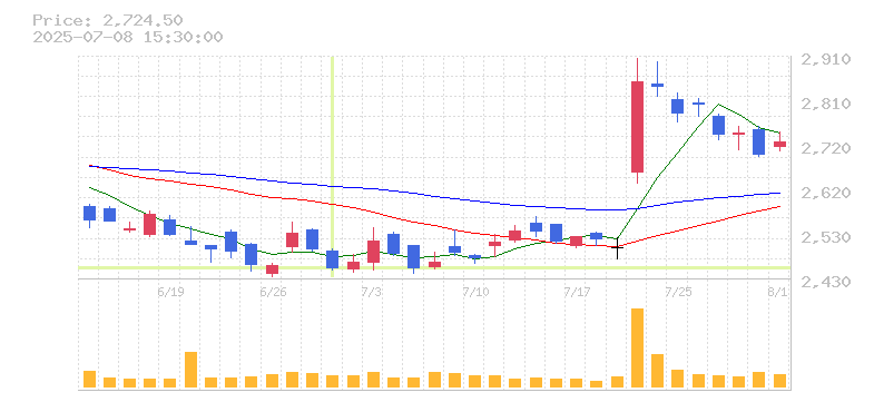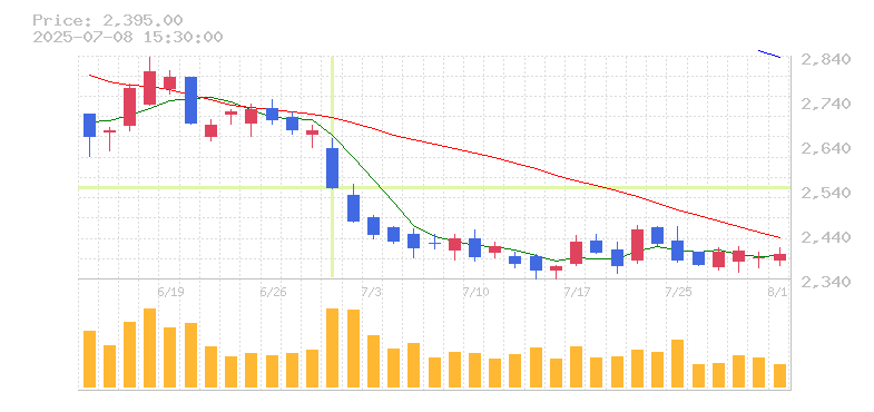 株価:2,545円(-4.75%)前日比:-127