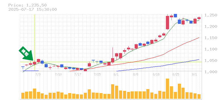 今後の展開としては、強い需給関係が続く限り、目標価格を1,200円以上に設定できるかもしれません。市場動向に注意しつつ、ポジティブな姿勢で臨むことをお勧めします。