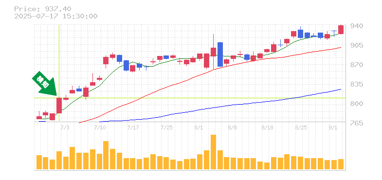 今回の株価データを分析すると、最近の株価は上昇トレンドにあり、特に直近の終値が807.88と高値を記録していることが注目されます。移動平均線も上向きで、短期的な強い買い圧力を示唆しています。これにより、さらなる上昇が期待できる状況です。