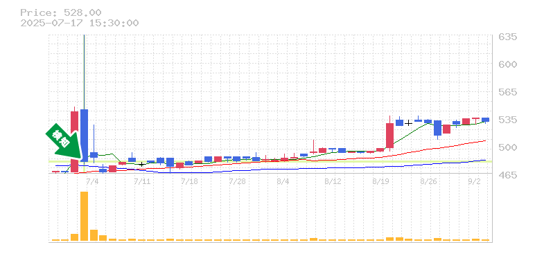 リスク管理の観点からは、過去の安値を参考にしつつ、損切り価格はおおよそ450円前後を目安にすると良いでしょう。この価格を下回ると、トレンドが変わる可能性があるため、注意が必要です。