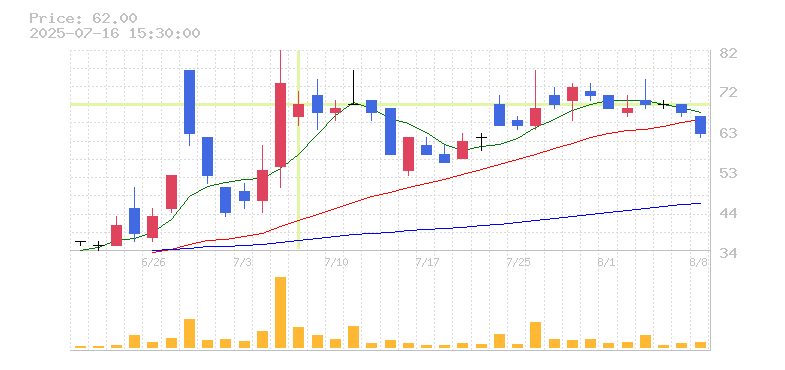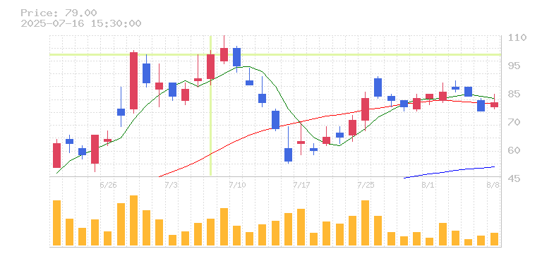 | 株価:69円(-6.76%)前日比:-5 | ||||