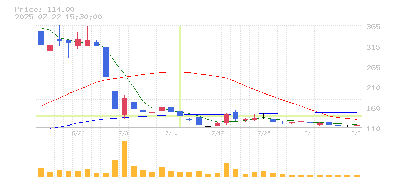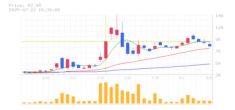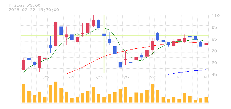 株価:87円(-9.38%)前日比:-9