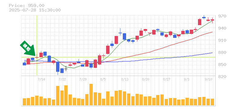 リスク管理の観点からは、過去の安値を基に、損切り価格はおおよそ830円前後を目安とすると良いでしょう。この水準を下回るとトレンド転換の可能性があるため、注意が必要です。