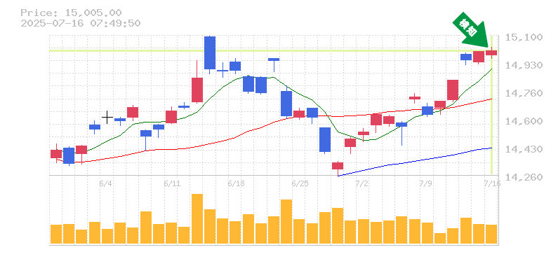 終 値:15005円