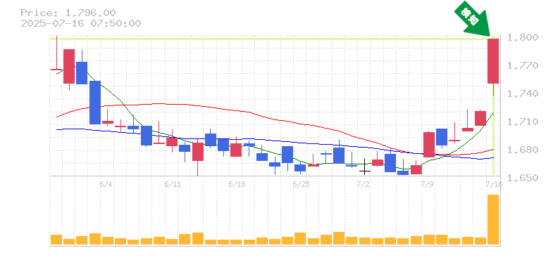 終 値:1796円