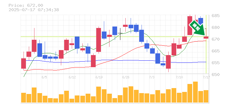終 値:672円