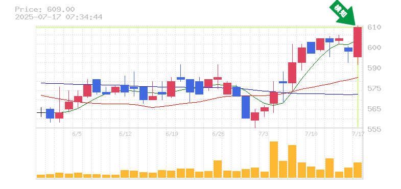終 値:609円