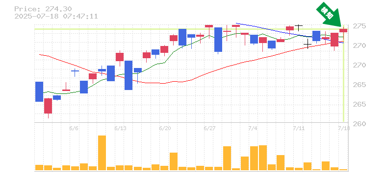 終 値:274.3円