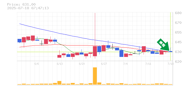 終 値:631円