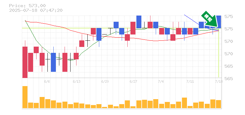 終 値:573円