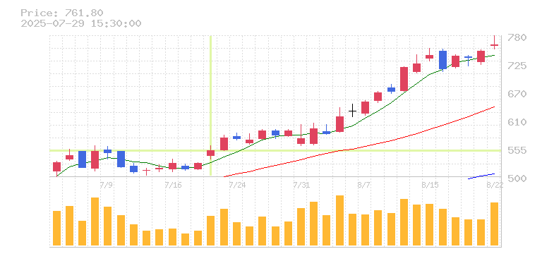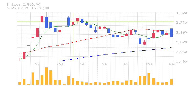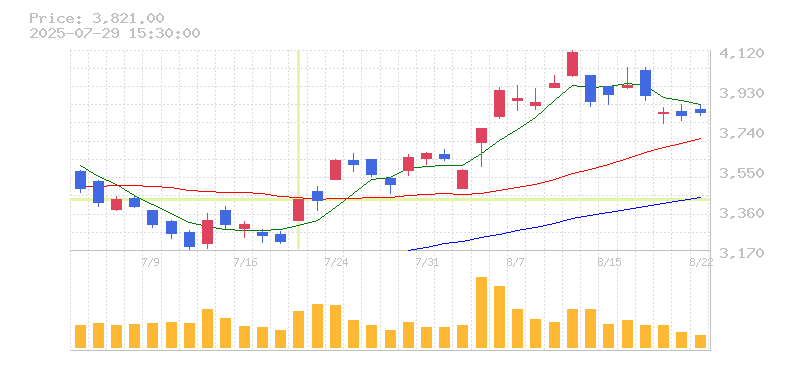 株価:3,755円(5.77%)前日比:+205