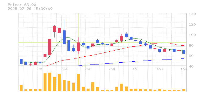 株価:63円(10.53%)前日比:+6