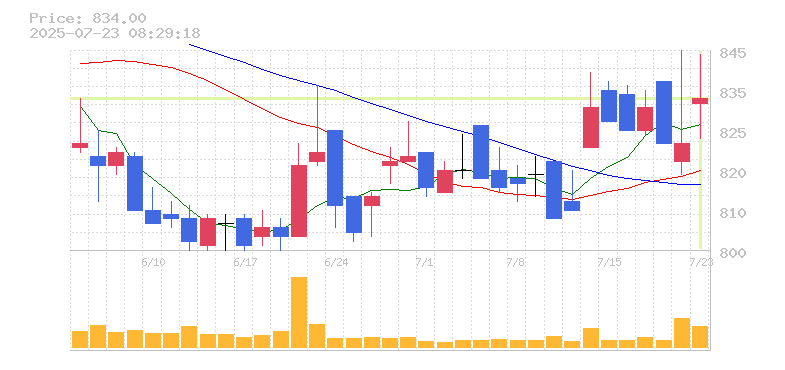 終値:822円