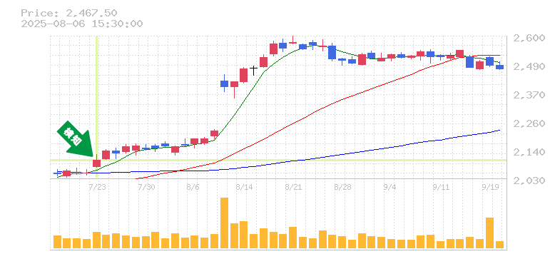 この銘柄は最近の高値を更新する可能性もあり、特に出来高が伴っている点もポジティブです。今後の市場環境により影響を受けるかもしれませんが、テクニカル面から見れば期待感が高い状況です。投資家にとって、今後の動向を注視しつつ、しっかりとしたリスク管理を行うことがカギとなるでしょう。