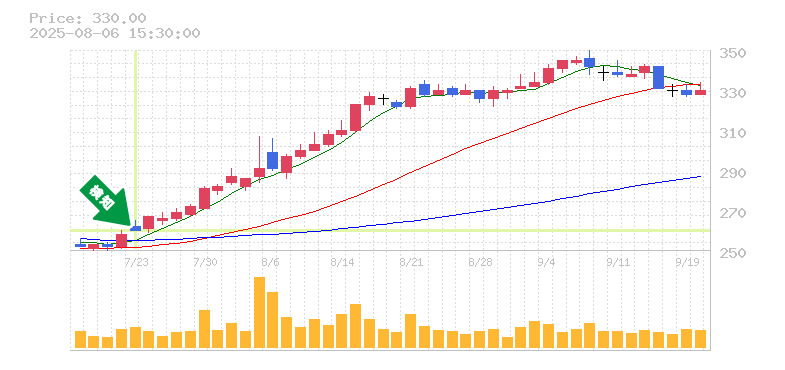さらに、過去の出来高も高水準で推移していることから、投資家の関心が高いことが伺えます。今後の展開においては、強いサポートラインが形成される可能性が高く、ポジティブなマインドが継続することが期待されます。全体的に、この銘柄は将来的な成長が見込まれるため、注目していく価値があるでしょう。