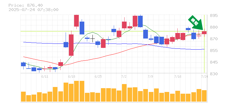終 値:876.4円