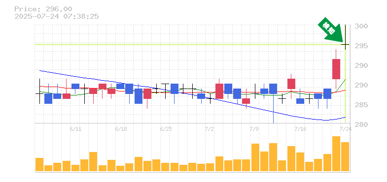 終 値:296円