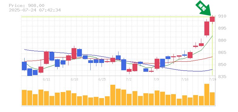 終 値:908円