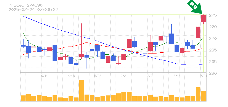 終 値:274.9円