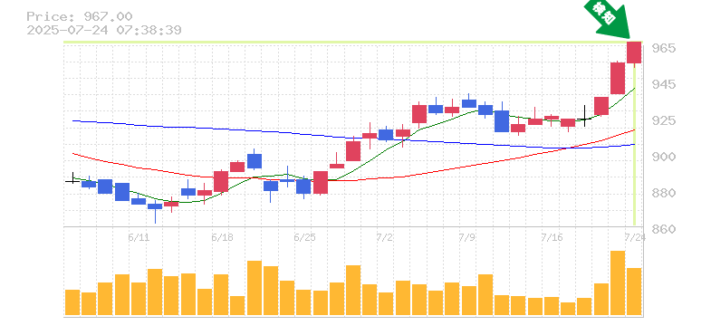 終 値:967円