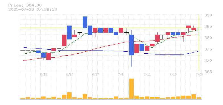 終値:384円