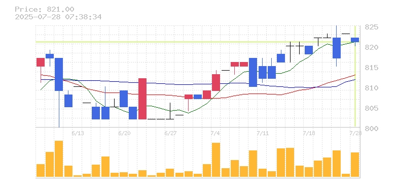 終値:821円