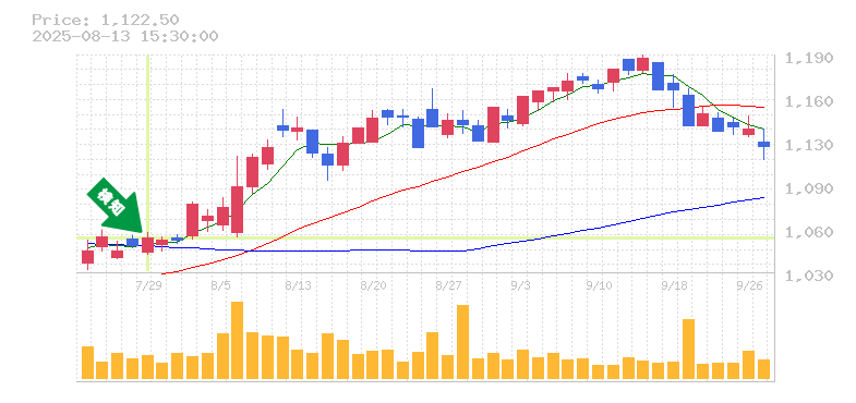 最近の株価動向を見てみると、全体的に強い上昇トレンドが続いていることが伺えます。ここ数日で高値を更新し、終値も安定して2500円台に位置しています。特に、移動平均線も上昇傾向にあり、短期的なトレンドが中長期的なトレンドをサポートする形になっています。このままトレンドが維持されれば、さらなる上昇も期待できそうです。