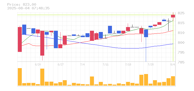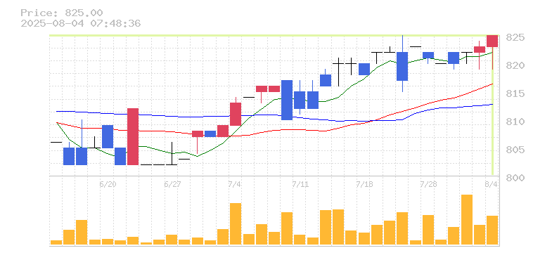 終値:825円