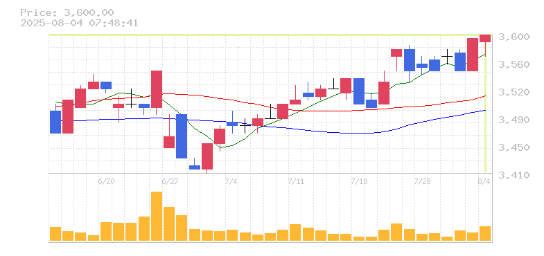 終値:3600円