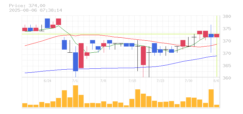 終値:374円