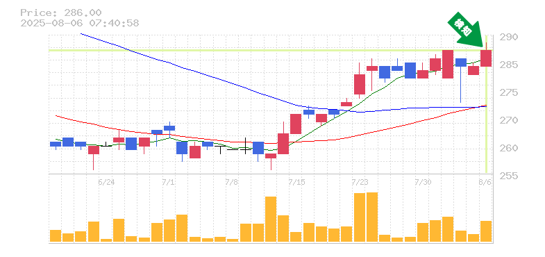 終 値:286円