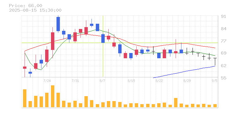 | 株価:75円(-8.54%)前日比:-7 | ||||