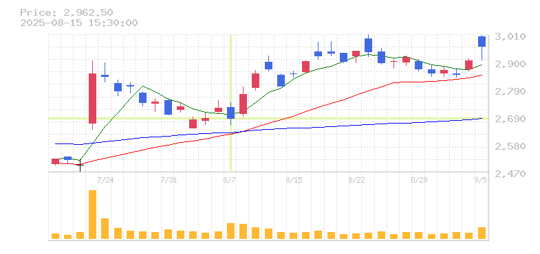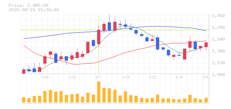 | 株価:2,651円(8.43%)前日比:+206 | ||||