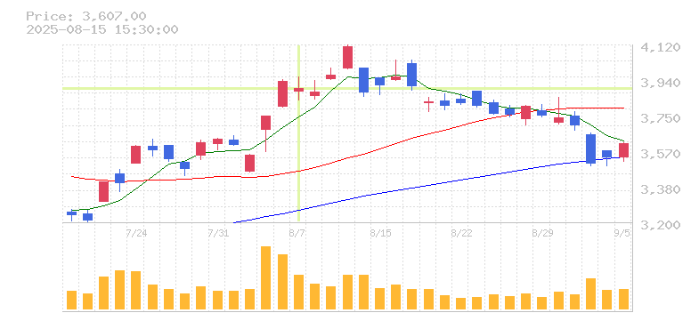 | 株価:3,892円(-0.89%)前日比:-35 | ||||