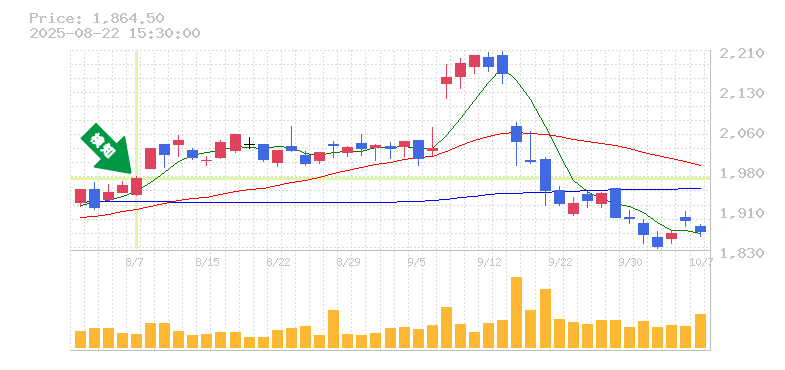 ただし、リスク管理は重要です。過去のデータを参考にすると、損切り価格の目安としては、直近の安値を基準に約5%下の価格、つまり1700円近辺が適切かと思われます。この価格を下回ると、トレンドの崩れが懸念されますので、注意が必要です。