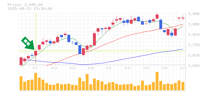 この銘柄は、近い将来においてもトレンドを維持する可能性が高く、特に業績や市場環境が良好であれば、さらに上昇する余地があると考えられます。今後の動きに注目しつつ、しっかりとしたリスク管理を行うことが成功のカギとなります。