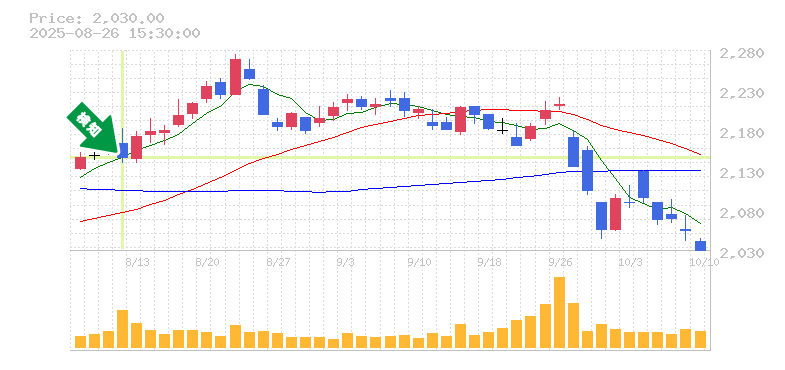 価格の動きに関しては、過去数日間で明確な上昇が見られ、特に出来高も増加していることから、投資家の関心が高まっていると評価できます。リスク管理の観点から考えると、損切り価格はおおよそ2060円前後を目安に設定することが適切でしょう。この水準を下回った場合には、トレンドが変わる可能性があります。